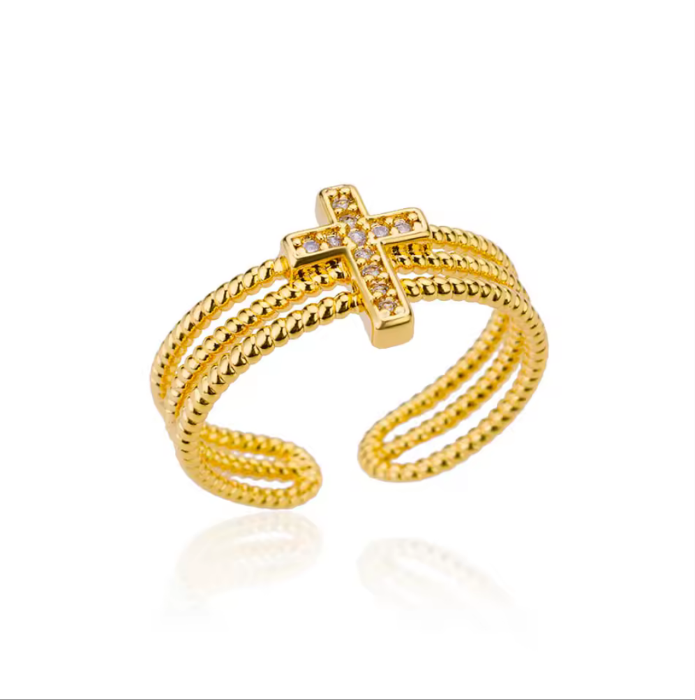 Cross 18k gold plated ring